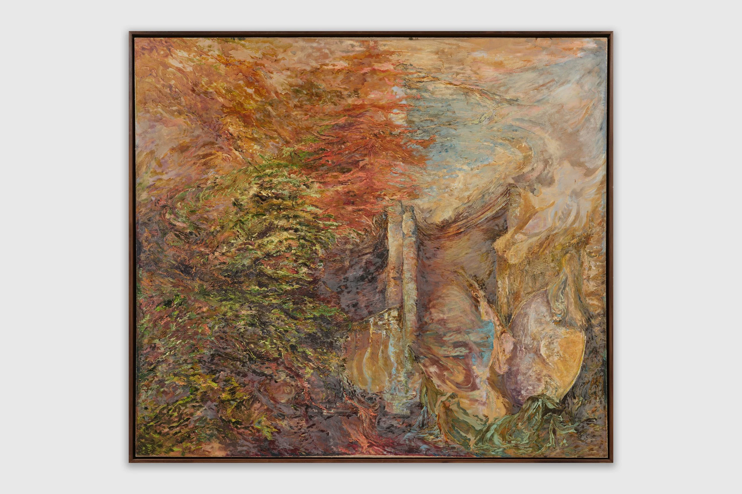 For more than 40 years Thérèse Oulton (b. 1953, Shropshire, UK) has held a critical position in painting towards both abstraction and figuration, challenging the orthodoxies of both. The first woman to be nominated for the Turner Prize in 1987, Thérèse Oulton evolved techniques of brushwork from a critical study of Old Master painting and controls the application of paint by a discipline related to conceptual art. The artist’s hermetic explorations oscillate between provocative image and luscious form, and the connection between abstraction and representation in Oulton’s work parallels the familiar Romantic opposition between nature and culture.