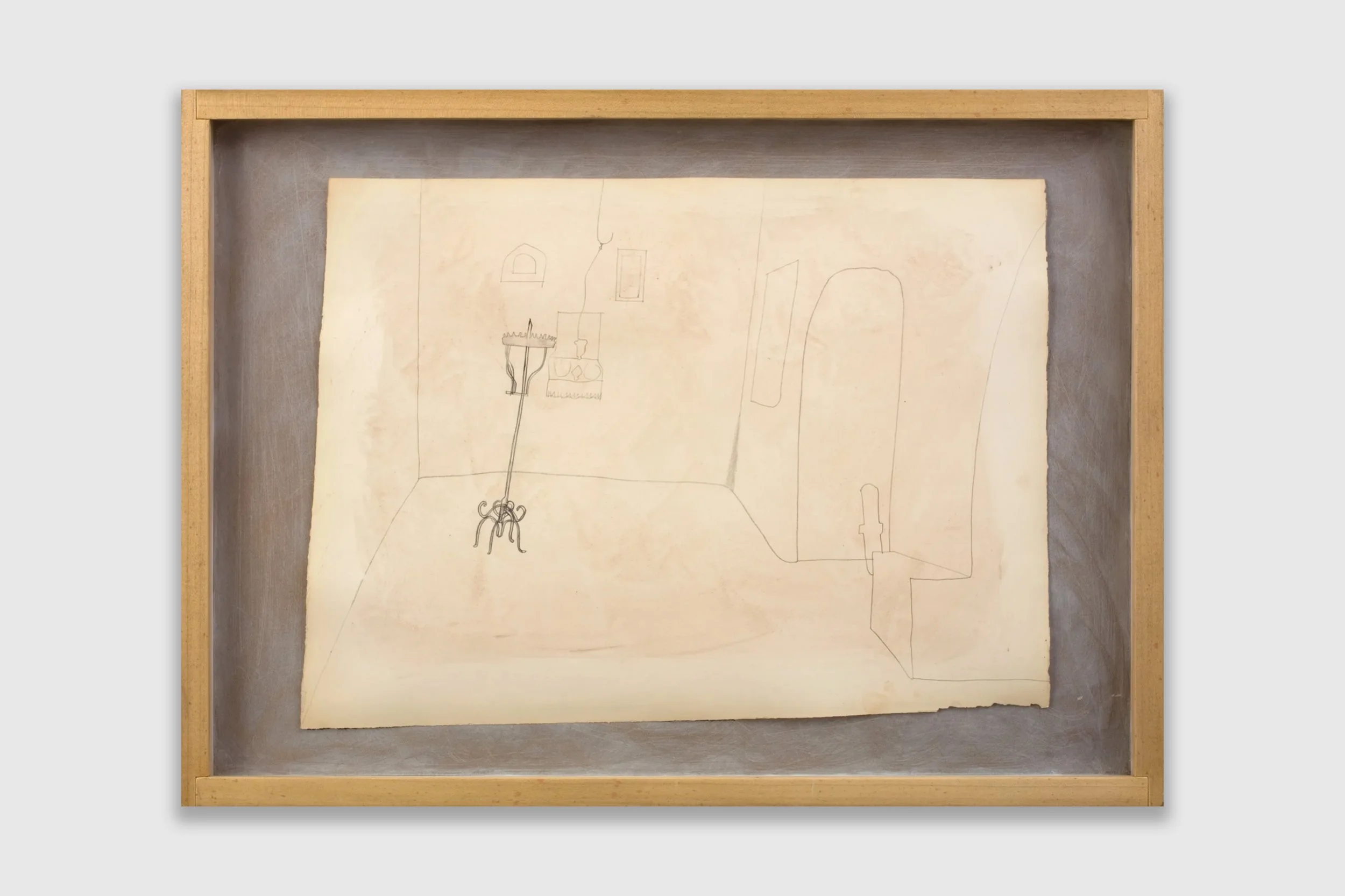 Pencil and oil wash on paper, on prepared backboard